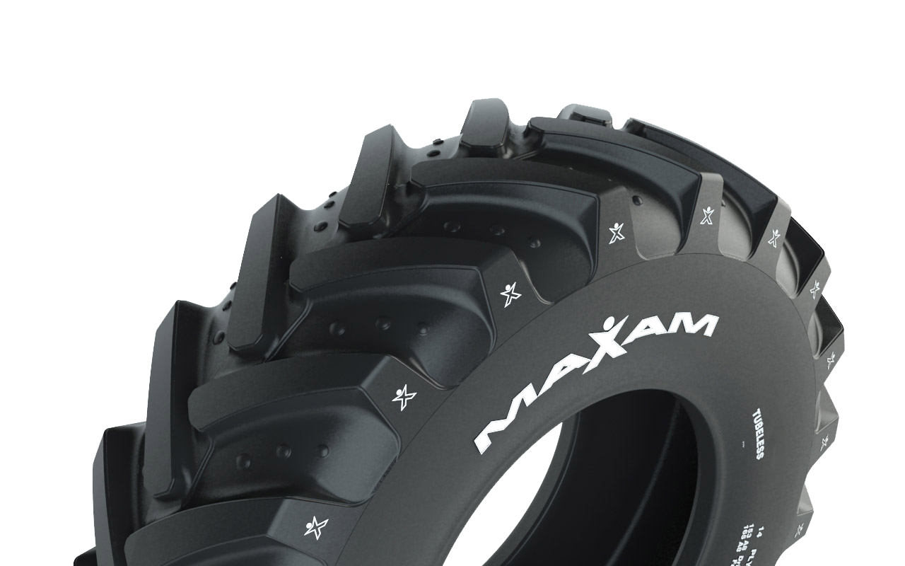 Patrón R1 modificado de la banda de rodamiento que proporciona tracción y flotación excelentes en condiciones de terrenos blandos.